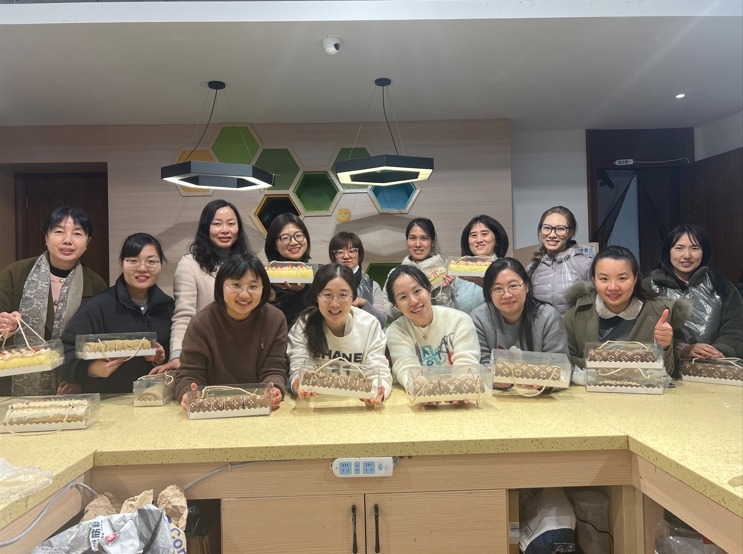 置身于蛋糕与奶油的浓郁香气中,不知不觉一份份甜蜜美味的蛋糕新鲜出炉,大家开心地与亲手创作的劳动成果合影留念,记录下这浪漫的瞬间。