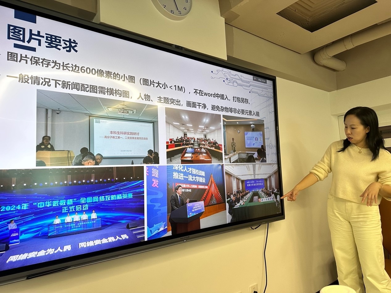 培训内容涵盖平台整体架构介绍、政策及规章制度宣贯、学校财务报销及招采流程宣贯、文稿撰写等四个部分。行政部主管韩晓佳率先作了详细的讲解,系统介绍了平台整体架构及运作模式,宣贯了平台的核心政策及规章制度,为新教职工厘清了工作思路。行政助理宋天欣对学校财务报销和招采流程进行了深入剖析,通过案例展示和实操指导,帮助与会者掌握具体操作方法。最后,党支部书记刘毓闻结合实际工作需求,生动讲解了文稿撰写的技巧与注意事项,为新教职工的日常工作提供了宝贵经验。