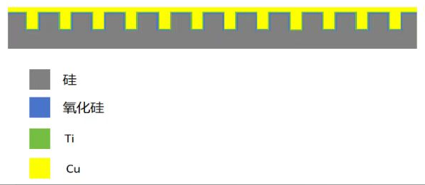 镀膜材料及厚度:阻挡层氧化硅:800nm;种子层:Ti200nm、Cu100nm;面铜10um