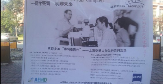 2013年10月30日,由上海交通大学AEMD平台与卡尔蔡司公司联合举办的“蔡司校园行——博学蔡司 明辨未来”在上海交大电信学院3-100会议室顺利举行。