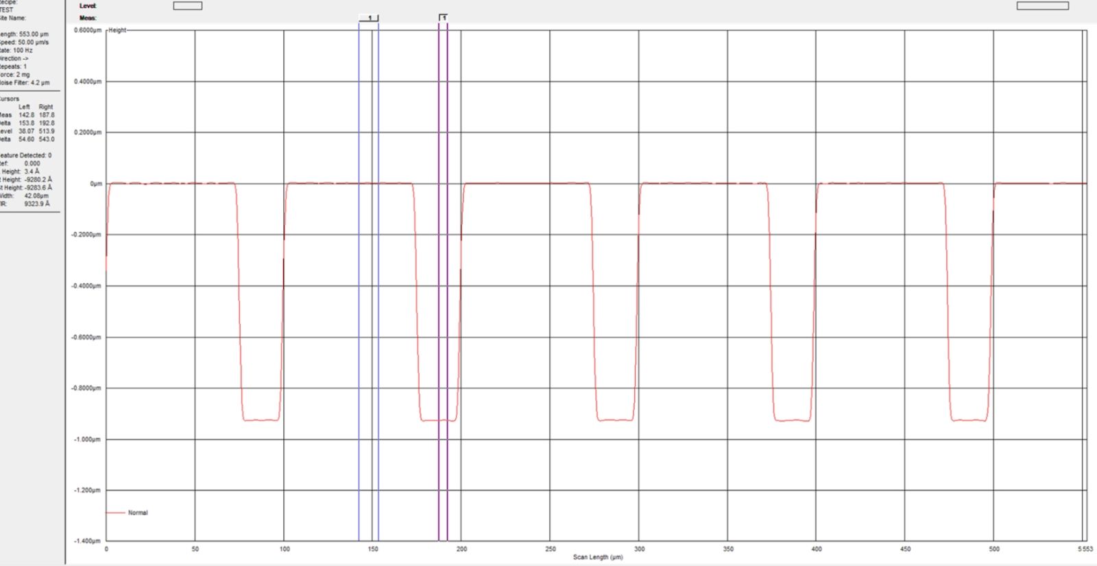 台阶样品测试(采样率100Hz,扫描速度50μm/s)