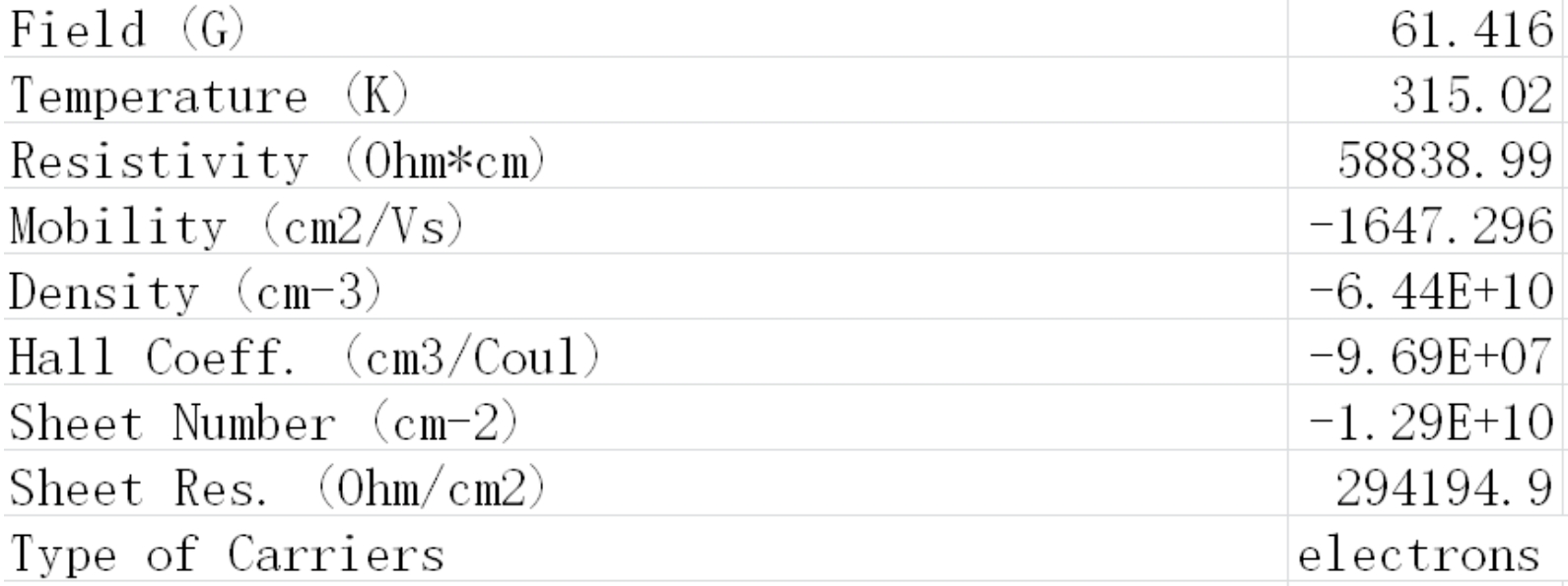 可测量:可控温度下电阻率、载流子迁移率、载流子浓度、载流子类型、薄膜电阻等。