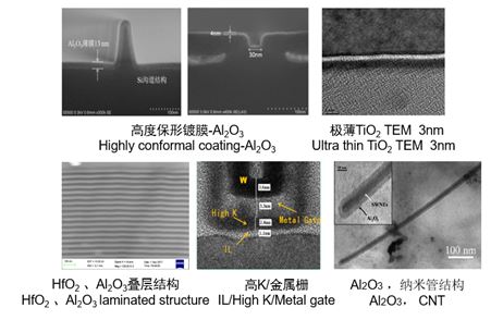 ALD可实现绝缘栅介质(高介电常数)、钝化层介质、保护层介质、金属阻挡层介质等多种材料原位生长, 可实现高度保形性镀膜。同时可以沉积定制化的铁电HfZrO 薄膜。