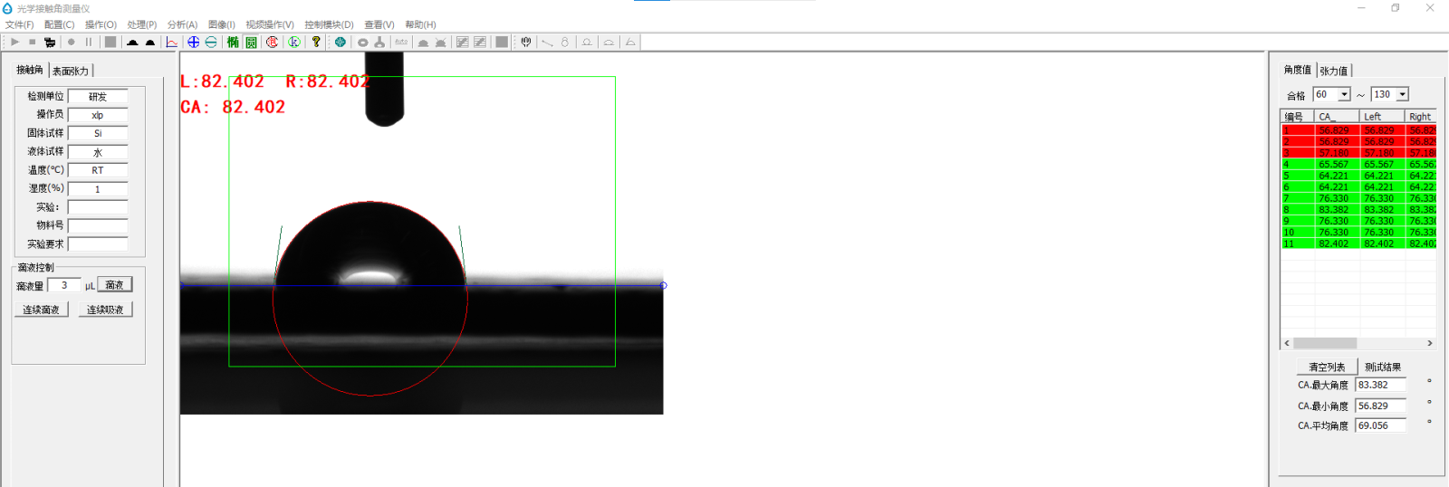 | 功能: | 主要是用来测试物体表面的接触角角度,通过水滴角度来分析判定物体表面的附着力、粘接性、疏水性、洁净度等重要指标 |