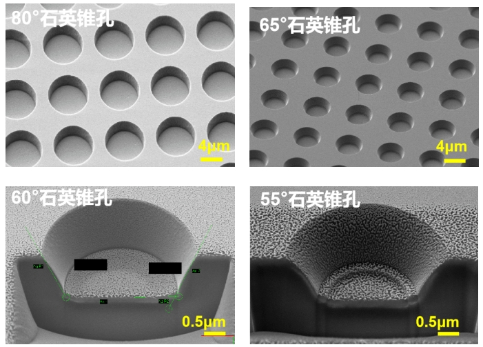 - 平台可提供定制化服务,根据客户的应用条件和环境变量,设计锥台/锥孔刻蚀工艺。具体可联系工艺工程师咨询。
